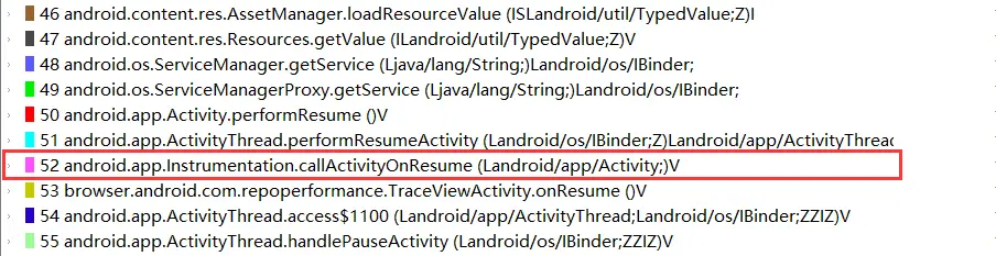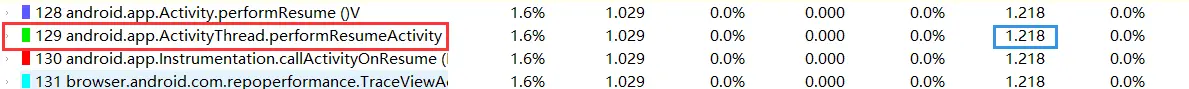 onCreate耗时: 和上面类似,点进去看耗时的方法,正是由于我们在前面进行IO操作引起的:onResume耗时: 可以看到,由于我们是另起了一个线程进行操作,因此,并不会占用它的运行时间。