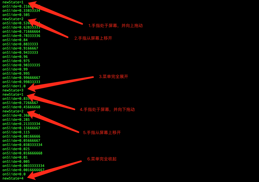 第一个回调函数用来监听BottomSheet状态的改变,也就是我们上面所说到的五种状态,而onSlide回调当中的slideOffset则用来监听底部菜单的偏移量: