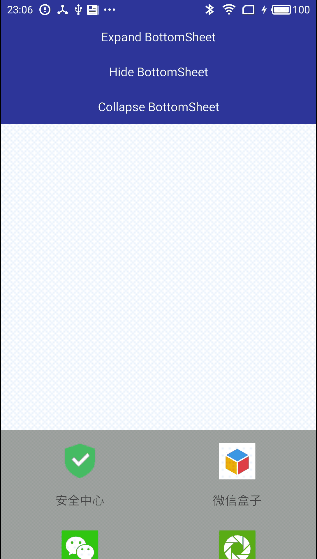 这样,一个底部菜单布局的声明就完成了,接下来,我们通过BottomSheetBehavior来管理这个菜单: