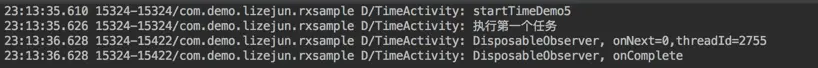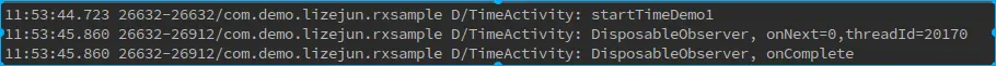 我们使用timer操作符实现下面的效果:延时1s后在子线程执行任务,接着完成,这里我们采用了timer,并通过subscribe方法让下游运行在子线程当中。
