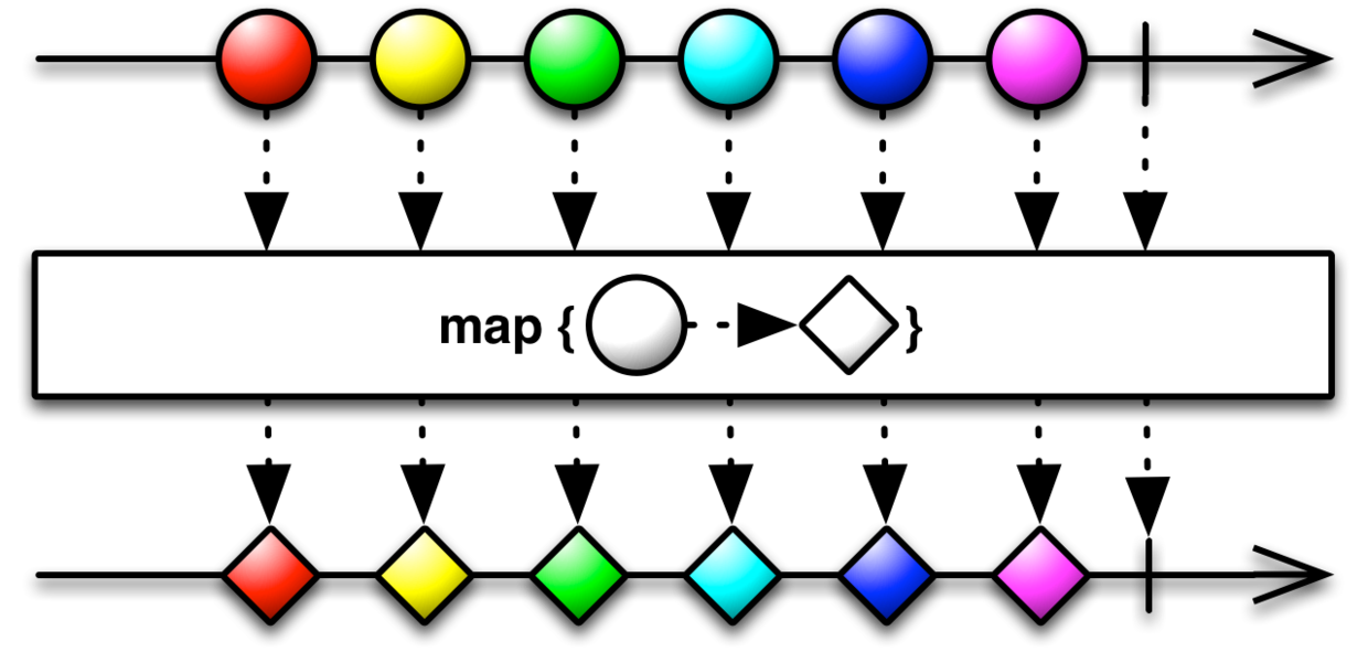 map,读取当前缓存的城市名,返回给订阅者,map的原理图如下所示,该操作符可以用于执行变换操作。