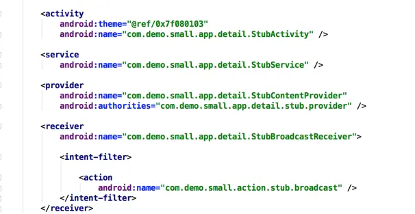 <receiver android:name="com.demo.small.app.detail.StubBroadcastReceiver">