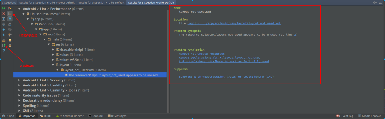 Lint是Android Studio中提供的代码分析工具,它能够检查出代码当中存在的问题,定义该问题的严重程度,并给出相应的解决方案,这样我们就可以快速地定位和修复问题。