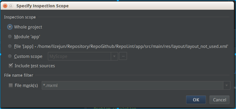 第一步:点击Analyze -> Inspect Code,之后,会弹出下面的界面: