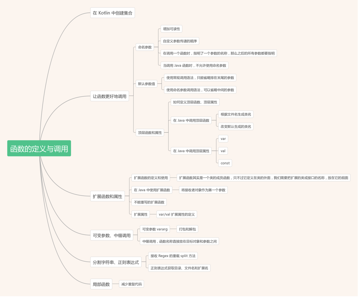 本文是对<<Kotlin in Action>>的学习笔记,如果需要运行相应的代码可以访问在线环境 try.kotlinlang.org,这部分的思维导图为: