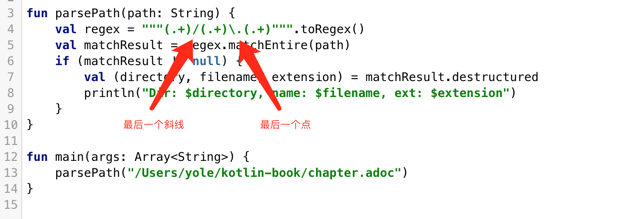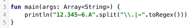 而在kotlin中,它提供了一个接受Regex类型的重载函数,这样确保了当有一个字符串传递给这些函数的时候,不会被当做正则表达式,我们可以使用扩展函数toRegex将字符串转换为正则表达式。