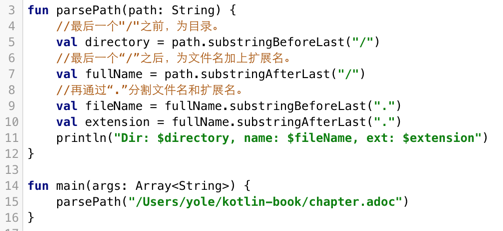 我们需要通过这个字符串获取到chapter.adoc的目录、文件名和扩展名,如果使用扩展函数,那么代码如下: