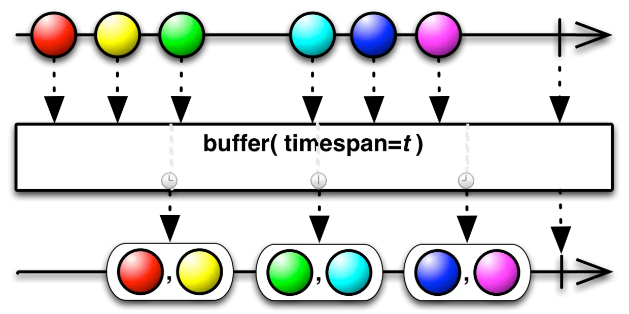 在上面的例子中,我们使用了buffer(int time, Unit timeUnit),其原理图如下所示: