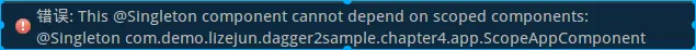 Component和需要依赖的Component的@Scope不能相同 - 在依赖关系中,需要依赖的