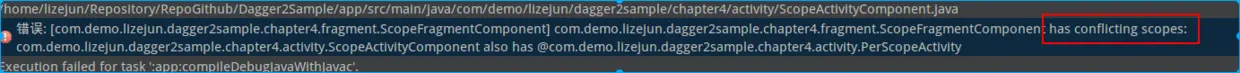 这些限制是由Dagger2在编译时去检查的,其目的是保证使用者不要对@Scope产生滥用的现象,因为@Scope的目的是 在特定作用域内控制被注入实例的复用。