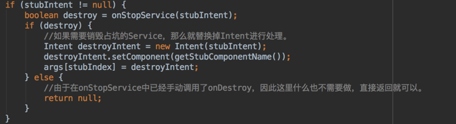 //如果需要销毁占坑的Service,那么就替换掉Intent进行处理。