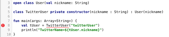 Expr类有一个只能在类内部调用的private构造方法,你也不能声明一个sealed接口,因为如果这样做,Kotlin编译器不能保证任何人都不能在Java代码中实现这个接口。