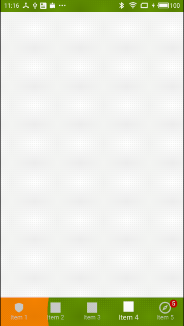 mBottomNavigationBar.addItem(new BottomNavigationItem(R.drawable.ic_5, "Item 5").setActiveColorResource(android.R.color.holo_orange_dark));