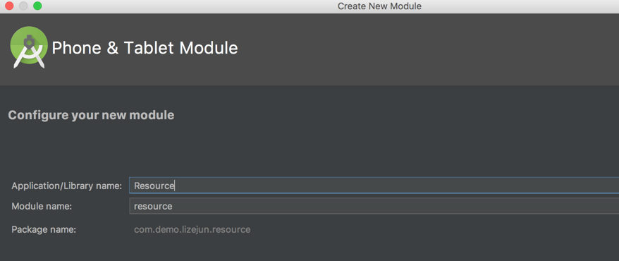 这里,我们需要将所需要的插件资源放在一个.apk文件中,因此,我们创建一个新的Phone & Tablet Module: