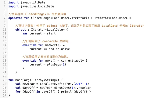 因为由类实现的接口集是固定的,而Kotlin不能为了实现其他接口而修改现有的类,因此一般 通过扩展函数的机制 来为现有的类增添新的 约定方法,从而适应任何现有的Java类。