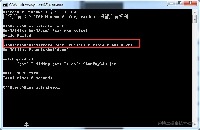 如果不想命名为build.xml,运行时可以使用 ant -buildfile test.xml 命令指明要运行的构建文件。