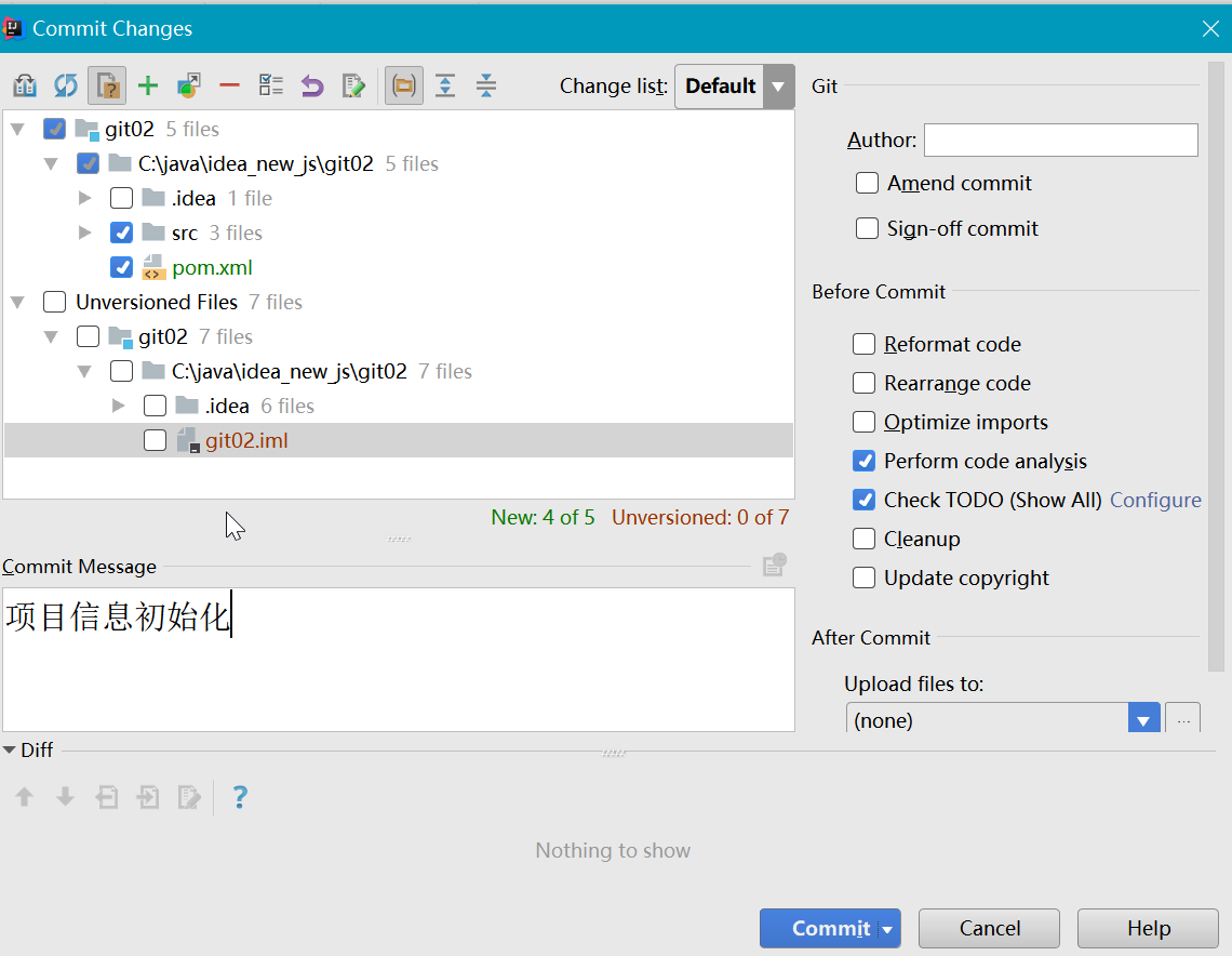 执行项目提交操作 将项目文件提交到本地并推送到github 远程仓库(注意提交文件时必须添加备注信息 否则提交失败!) 当前提交到本地。