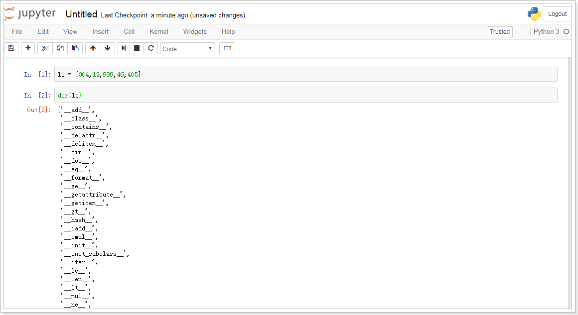 #查看list的相关功能使用dir()