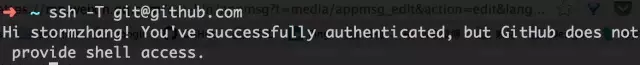 SSH key 添加成功之后,输入 **ssh -T git@github.com **进行测试,如果出现以下提示证明添加成功了。