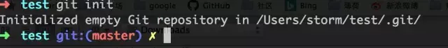 可以看到初始化成了,至此 test 目录已经是一个 git 仓库了。
