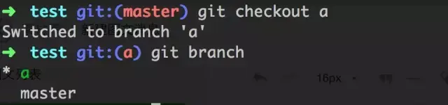 - git checkout a 执行这个命令,然后再输入 git branch 查看下分支情况: