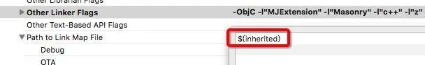 解决办法是选择使用 CocoaPods 中的设置,在Other Linker Flags的地方用$(inherited)替换掉原来的!如图: