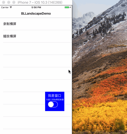 本来我们的这个 UITableViewController 是不支持横竖屏的,就像这样,注意,这个时候那个 UISwitch 按钮是关闭的。