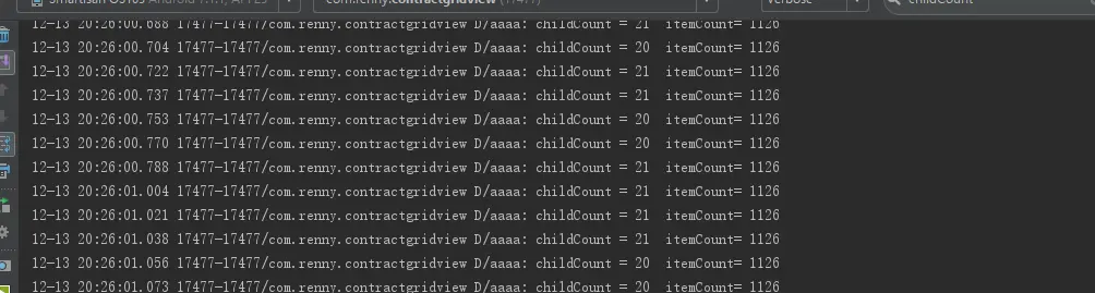Log.d(TAG, "childCount = " + getChildCount() + " itemCount= " + itemCount);