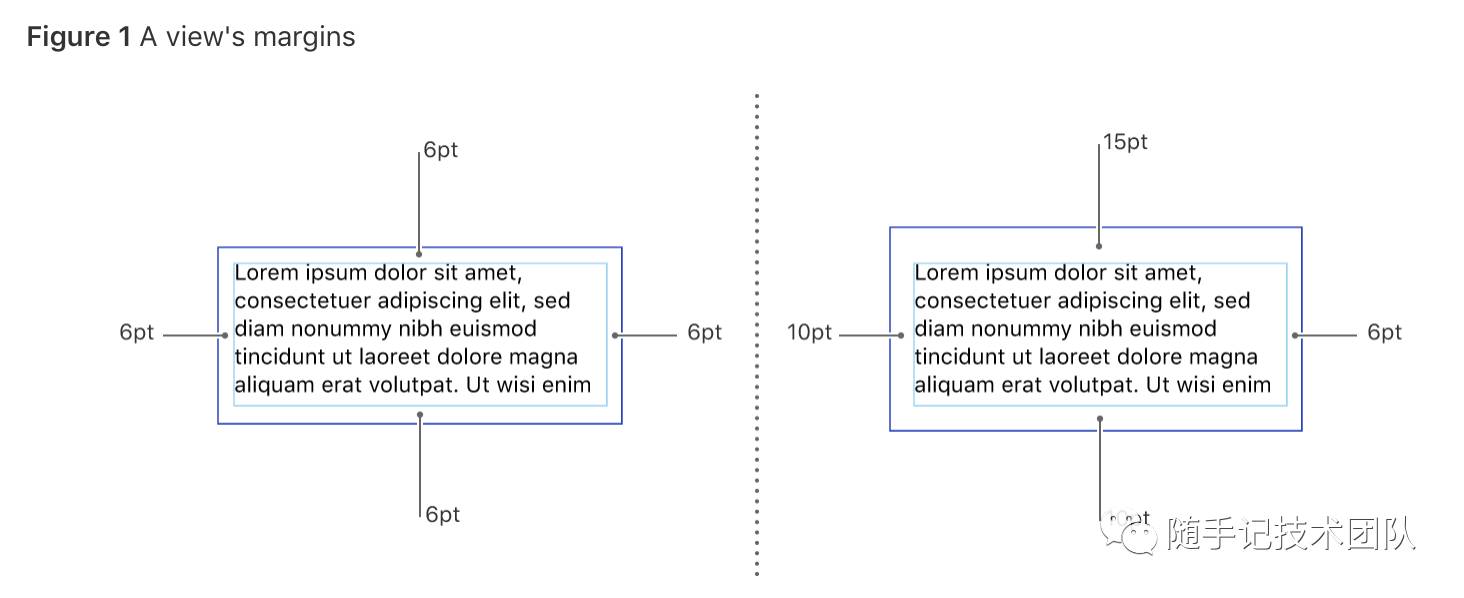 总的来说,layout margins 可以视作视图的内容和内容之间的空隙。它由每个边的 insetValues 组成,分别是 top, bottom, leading and trailing. 对应的是上、下、左、右。