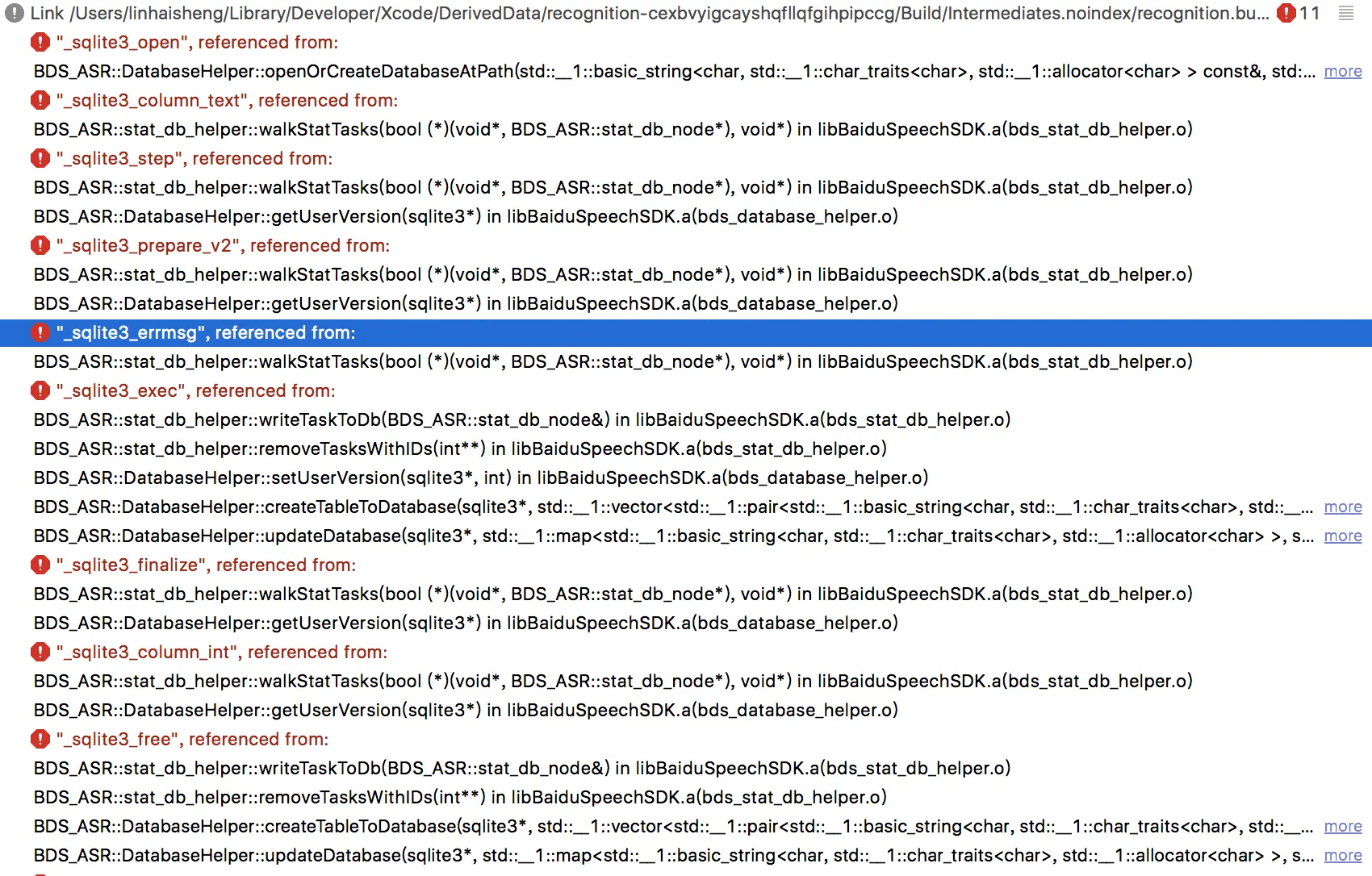 General->Linked Framewords and Libraries里添加libsqlite3.tbd