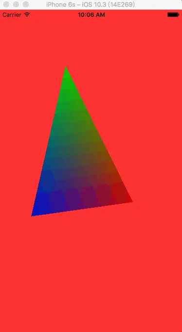 上面的Fragment Shader中我把传递过来的颜色根据当前的elapsedTime进行了计算,颜色的强度会随着(sin(processedElapsedTime) + 1.0) / 2.0;的曲线变化。这里我做了vec4 * float的运算,结果仍然是vec4。vec4(a,b,c,d) * f的运算结果是vec4(a*f,b*f,c*f,d*f)。