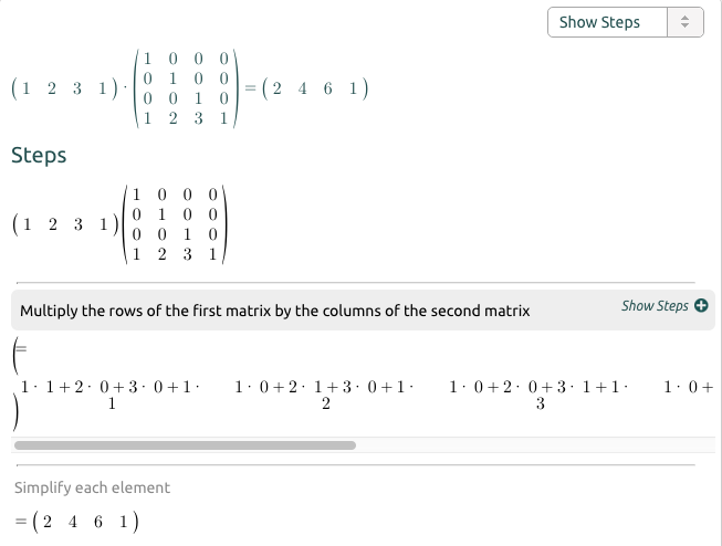 假设有一个点(1, 2, 3),经过大小为(1, 2, 3)的平移,最终必定会平移到(1+1, 2+2, 3+3)的位置。使用矩阵计算如下。