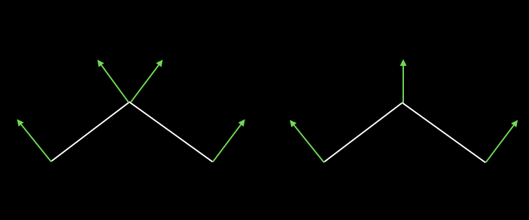 看到这奇怪的渲染效果,很明显,事情还没有结束。如果你有看基本光照这一篇文章,应该会知道法线可以有下面两种表现方式。