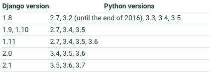 由于我的运行环境是mac+python3.6,所以我用的是Django1.11版本: