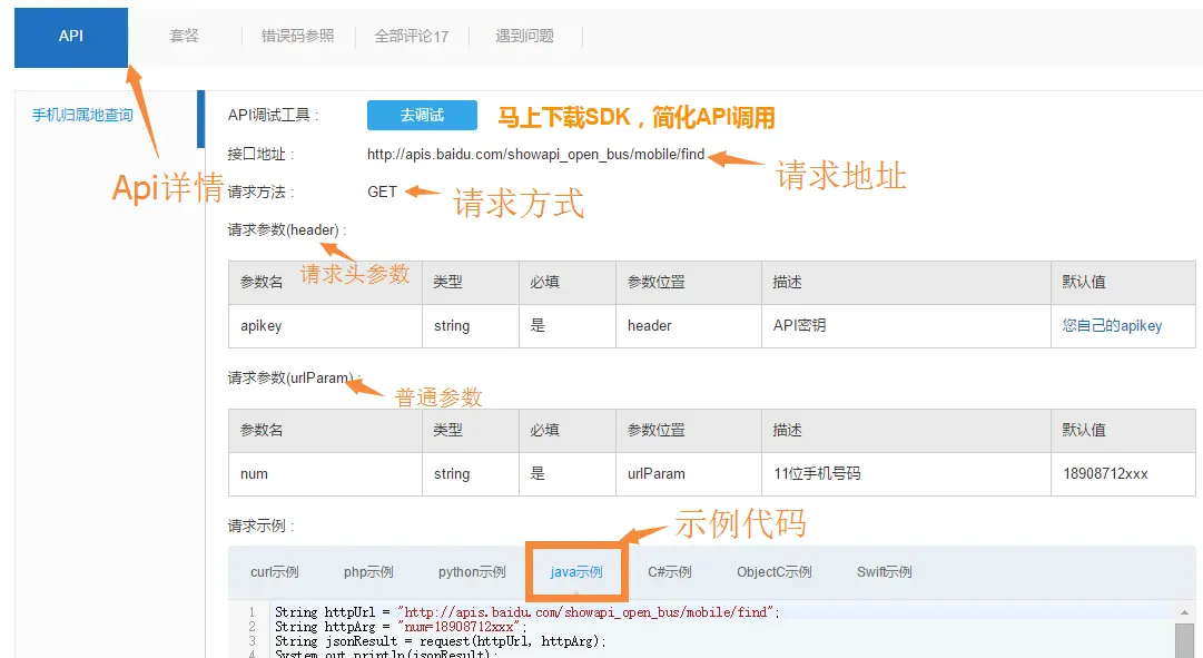 我们以查询号码归属地这个地址演示下。