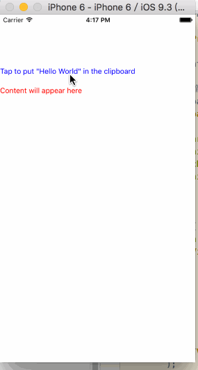 Tap to put "Hello World" in the clipboard