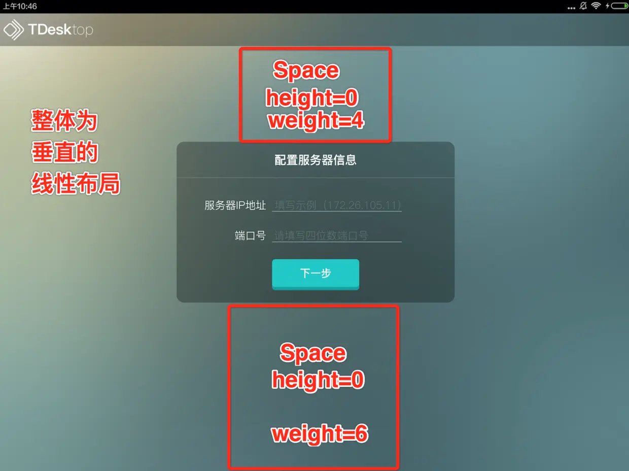 Space控件是在Android 4.0中加入,是个空白的view,一般用于填充View组件中的间隙。