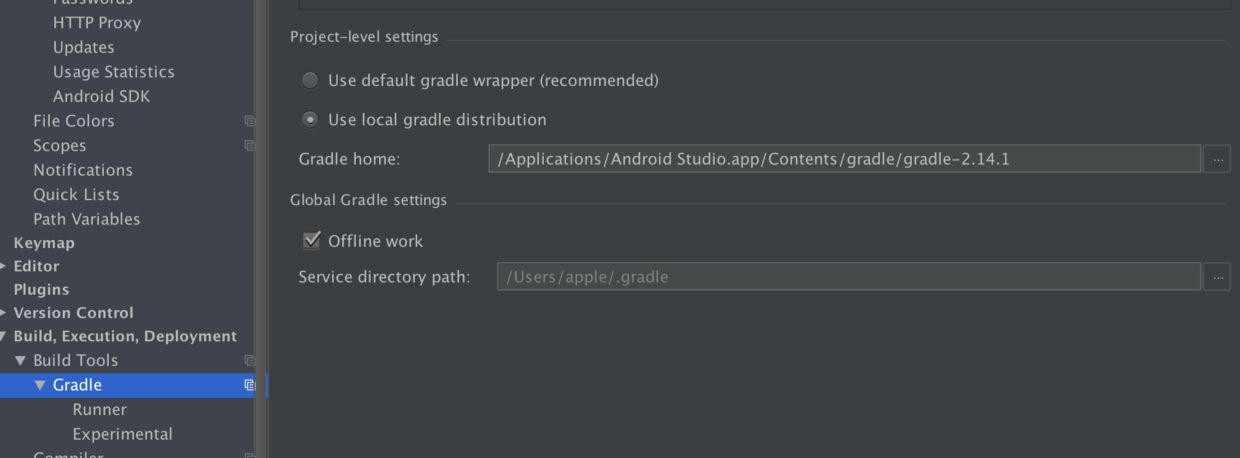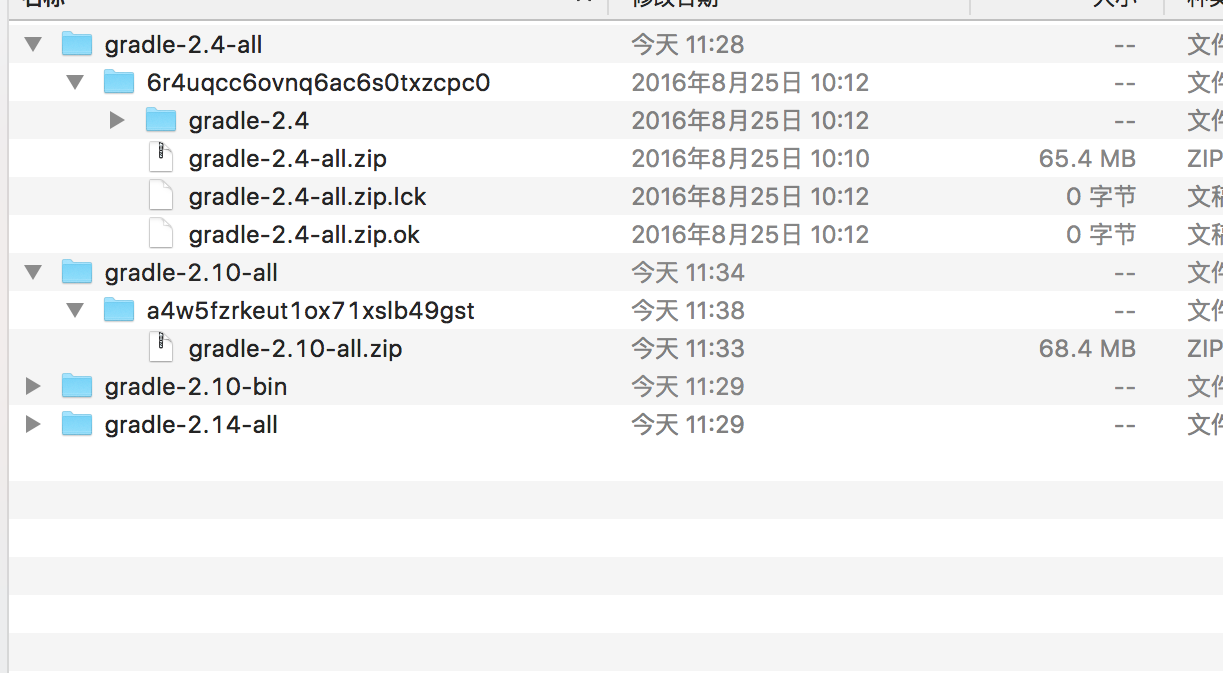 mac默认在/Users/apple/.gradle/wrapper/dists/ 每个版本zip包都放到相应版本路径下,如:
