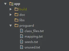 然后执行build的release打包,会在app目录下生成一个proguard文件夹,里面有混淆前后文件的映射信息等文本文件,以后bug定位就靠它了: