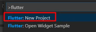 - 按下快捷键:Ctrl+Shift+p,然后输入“flutter”,选择“Flutter: New Project”