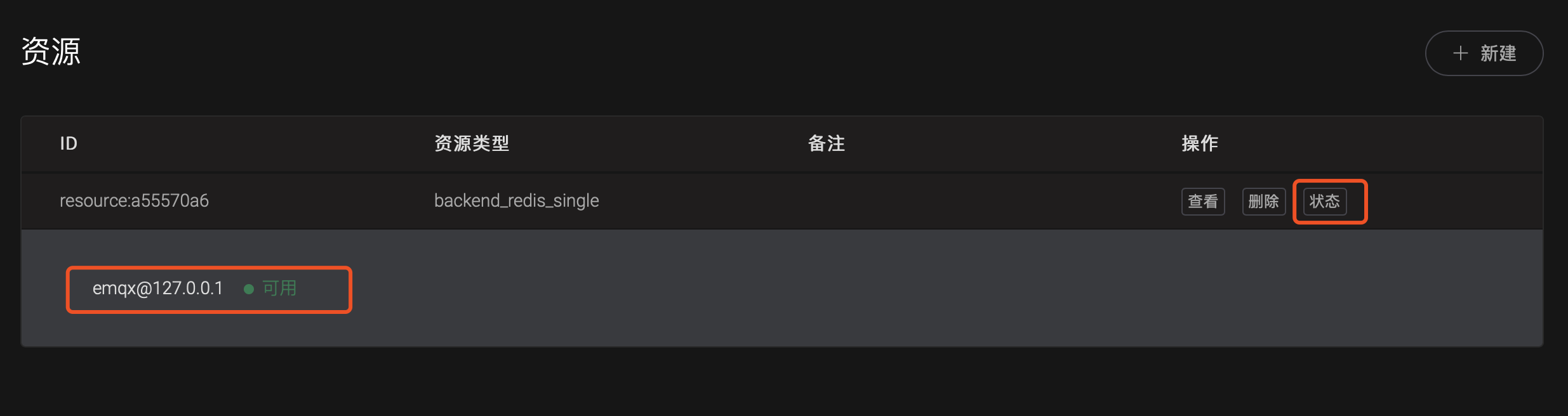EMQ X 集群中节点所在网络环境可能互不相同,资源创建成功后点击列表中 状态按钮,查看各个节点资源连接状况,如果节点上资源不可用,请检查配置是否正确、网络连通性,并点击 重连 按钮手动重连。