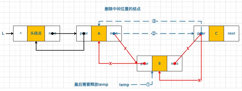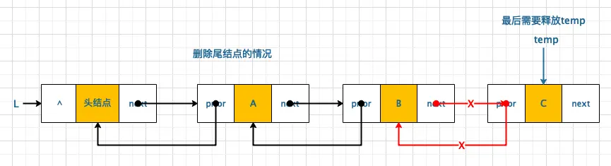 //如果删除的是尾结点 不需要修改temp->next 的prior结点的指向