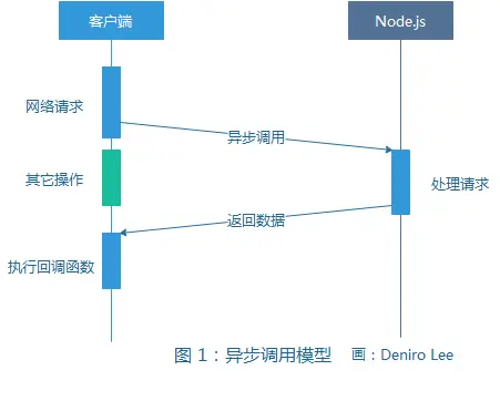 执行网络请求后,客户端可以继续执行其它操作,直到 Node.js 返回数据,执行回调函数时为止。