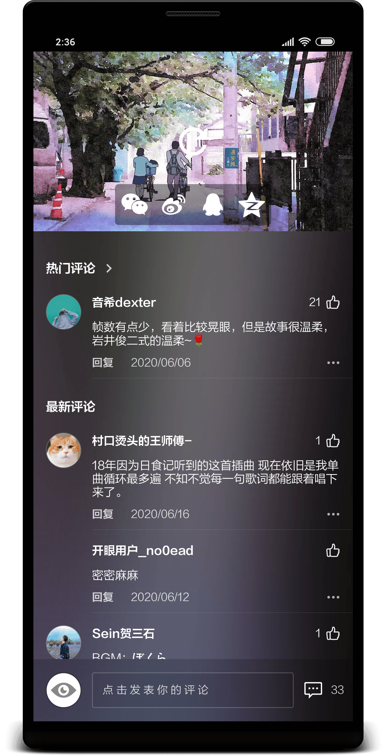 另外值得一提的是,所有 UI 都是经过标注工具测量后的,无论是字体颜色、大小、间距等几乎都是像素级模仿的「开眼 Eyepetizer」Android 客户端 App,对应的 v6.3.1 版本(目前最新版)。