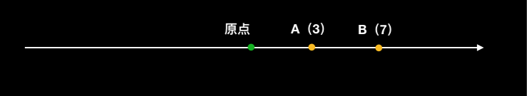我们增加点B,它在世界空间的坐标是7,如果此时我们将A设置为原点,那么B的坐标就变成了4。我们可以说B在点A物体空间的坐标是4。我们通过B在点A物体空间中的坐标和A在世界空间的坐标就可以计算出点B在世界空间的坐标7。