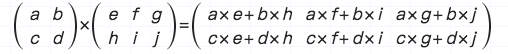 下面是2x2和2x3矩阵的乘法规律,读者可以参考下。