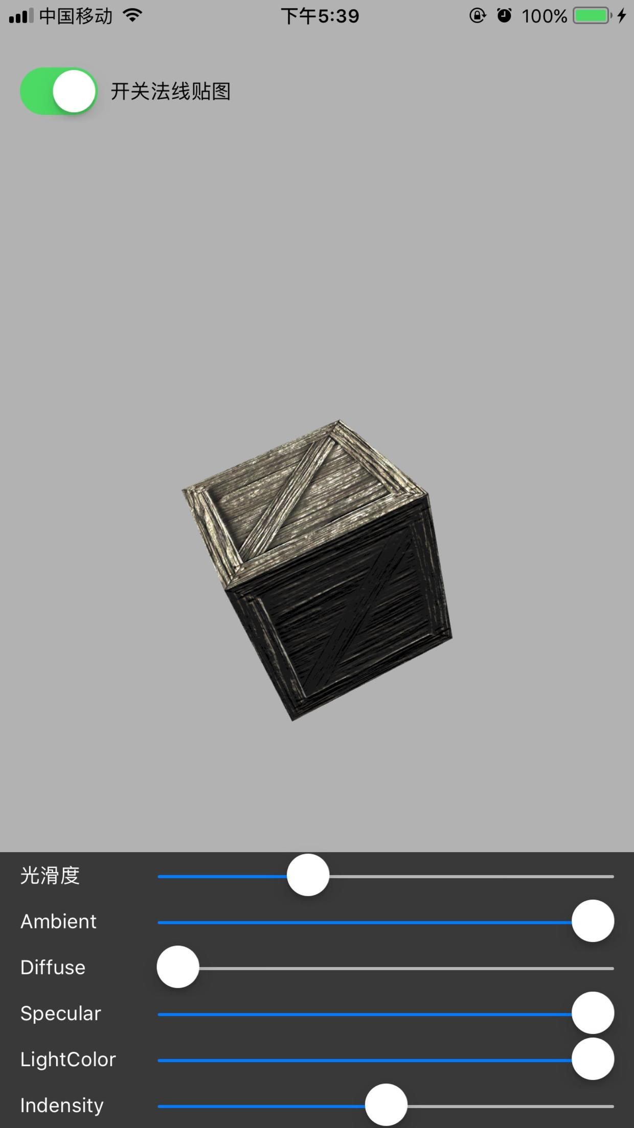 最后我们在ViewController中创建一个来自Obj文件的Cube模型,并给与它木箱的漫反射贴图和法线贴图。