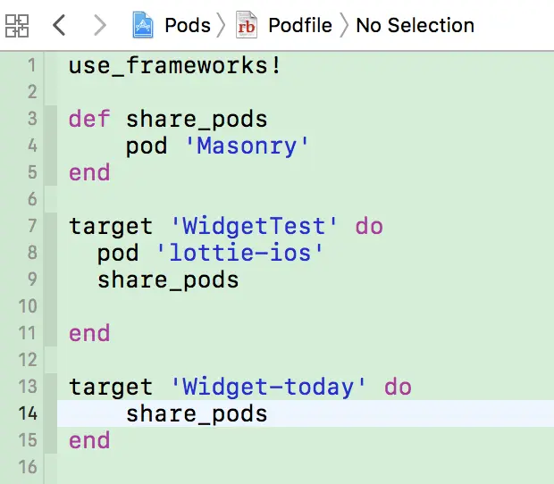 如果想使用Pod 管理的第三方库,那么只需要以下三步就可以愉快地玩耍了(比如我想使用 Masonry 布局) 1、 在podfile文件中