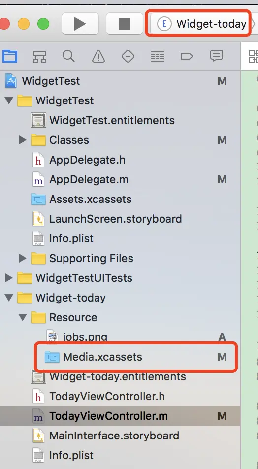 使用图片也是必不可少,然而 imageNamed: 和 imageWithContentsOfFile: 两种方式加载都不行,即使设置了文件的 target 为 Widget Extension,后来在其target 内部建立一个 .xcassets 文件即可加载图片