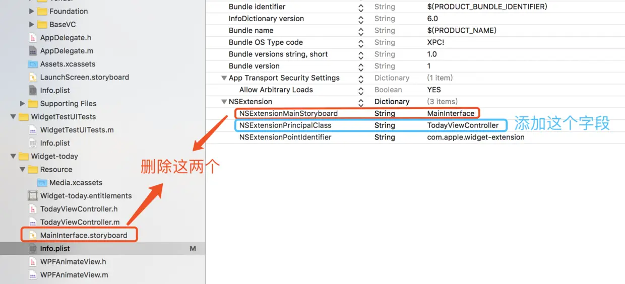 - 添加 NSExtensionPrincipalClass 字段并设置为 TodayViewController